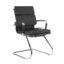 Cadeira de reunião para escritório com encosto e assento revestidos em courino dublado com espuma de densidade controlada nas almofadas.